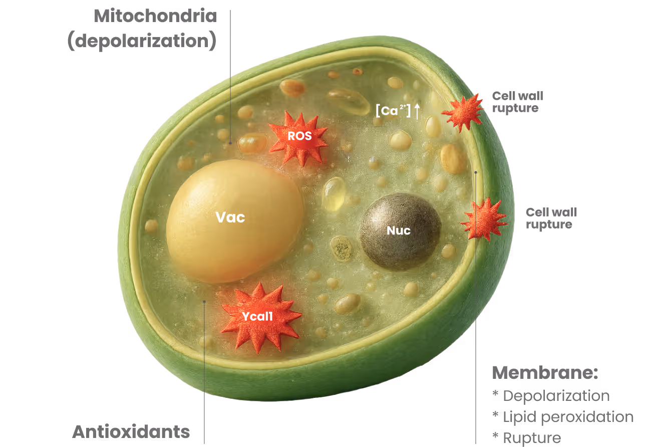 Our fungicides absorb sunlight to generate reactive oxygen species that attack fungal cells at multiple sites. This approach delivers broad-spectrum control while helping address resistance concerns.
